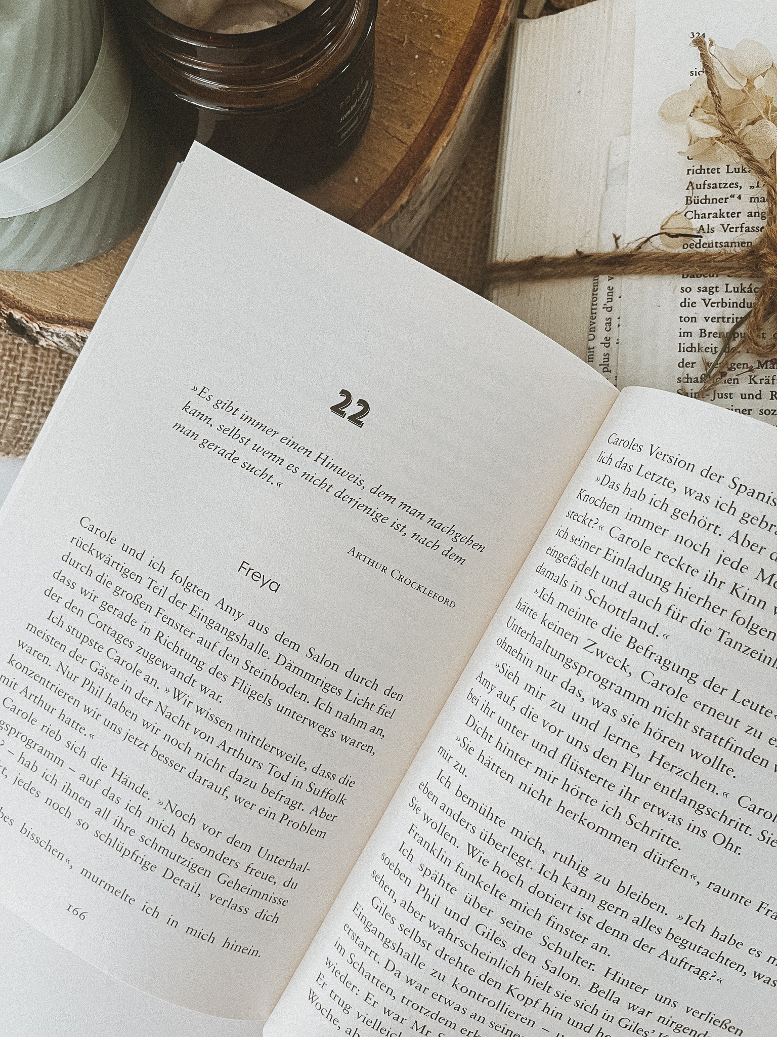 Die Geschichte beginnt mit dem Tod von Arthur Crockleford. Jedes Kapitel wird von einer Person erzählt, die an dessen Testamentseröffnung teilnimmt, obwohl hauptsächlich Freya und ihre Tante Carole die Erzählerinnen sind. Als Lesende lernen wir also nach und nach einige potentielle Täter*innen kennen.