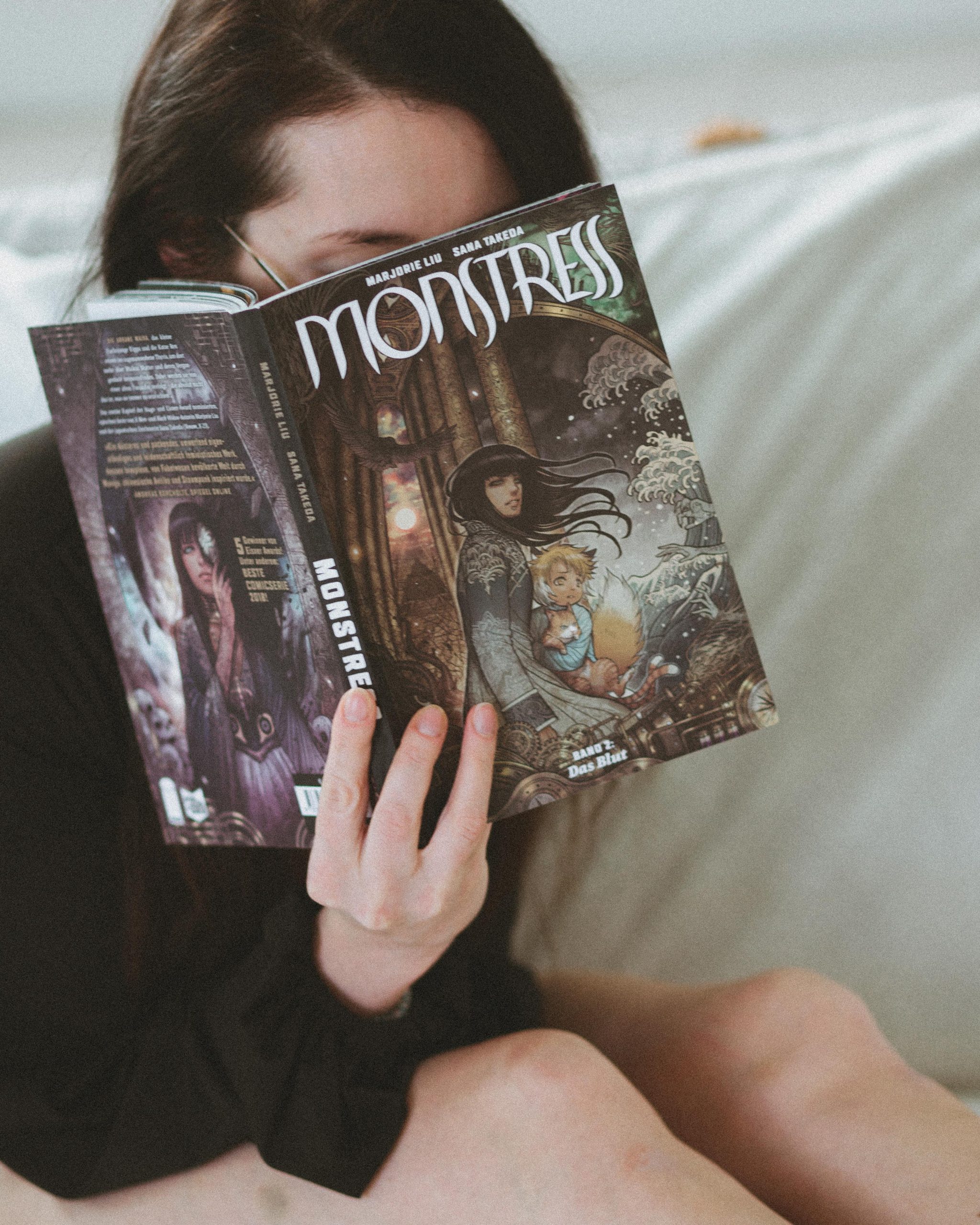 Monstress überzeugt nicht nur durch differenzierte Charaktere und tiefgründige Dialoge, sondern auch durch eine komplexe narrative Struktur. Der erste Band beginnt direkt mit einem dramatischen Ereignis – der Sklavenversteigerung von Maika – und entfaltet durch Rückblenden die umgebenden Umstände. Die Erzählweise ist eindringlich und berührt, und Maikas reflektierende Gedanken geben dem Leser tiefe Einblicke in ihre Innenwelt, wodurch eine emotionale Bindung entsteht. Mit poetischen Einsichten und klugen Beobachtungen ergänzt Monstress das düstere und gleichzeitig faszinierende Universum, das auf seinen Seiten erschaffen wird.